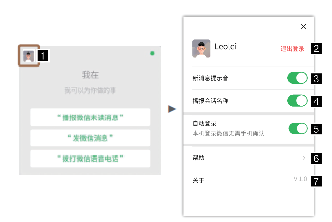 可设置新消息提示音、播报聊天名称、自动登录,查看版本等。