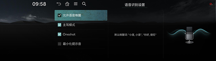 允许语音唤醒:默认唤醒词:“小度,小度”、“你好,捷尼”