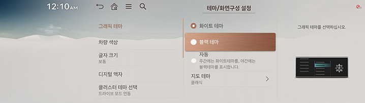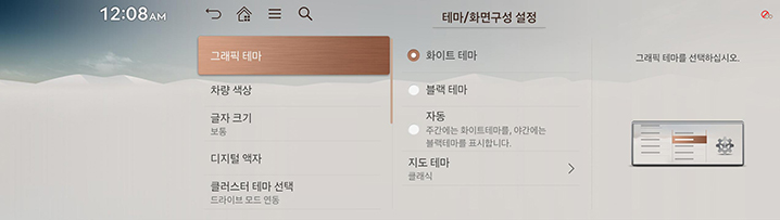 테마/화면구성 설정 화면에서 그래픽 테마를 누르세요.