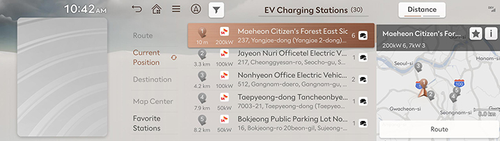 On the map, select a nearby charging station affiliated with In-Car Payment, and tap [