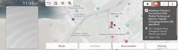 Find parking lots that support In-Car Payment and set one as your destination. When entering an affiliated parking lot, information such as basic and additional charges will be displayed.
